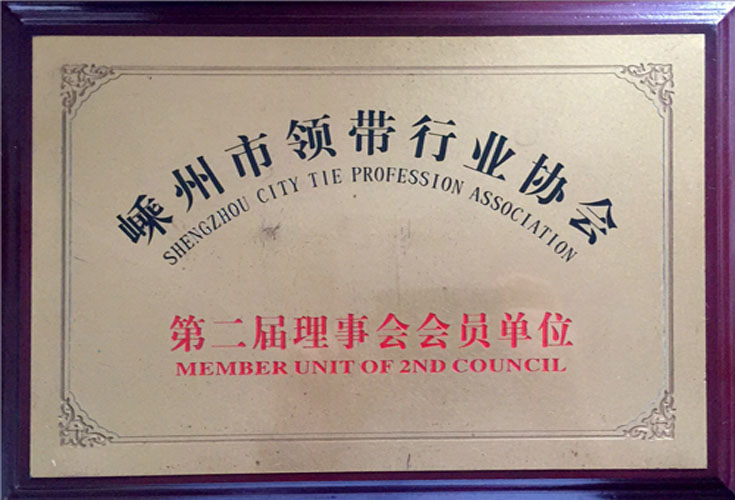 嵊州市億利領帶服飾有限公司 獲得嵊州市領帶行業協會第二屆理事會員單位