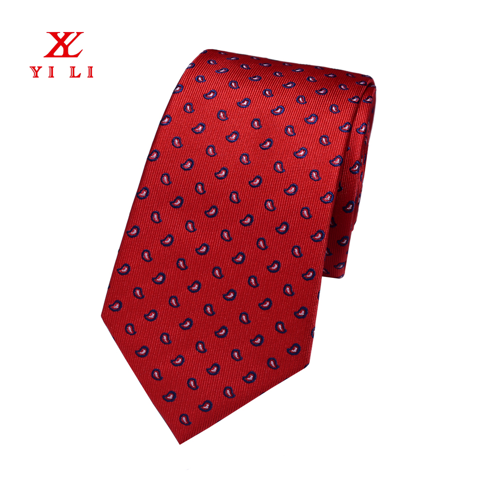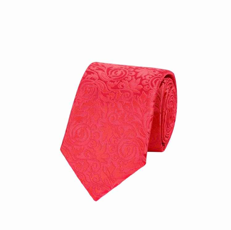 結婚領帶 紅色腰果花滌絲提花領帶