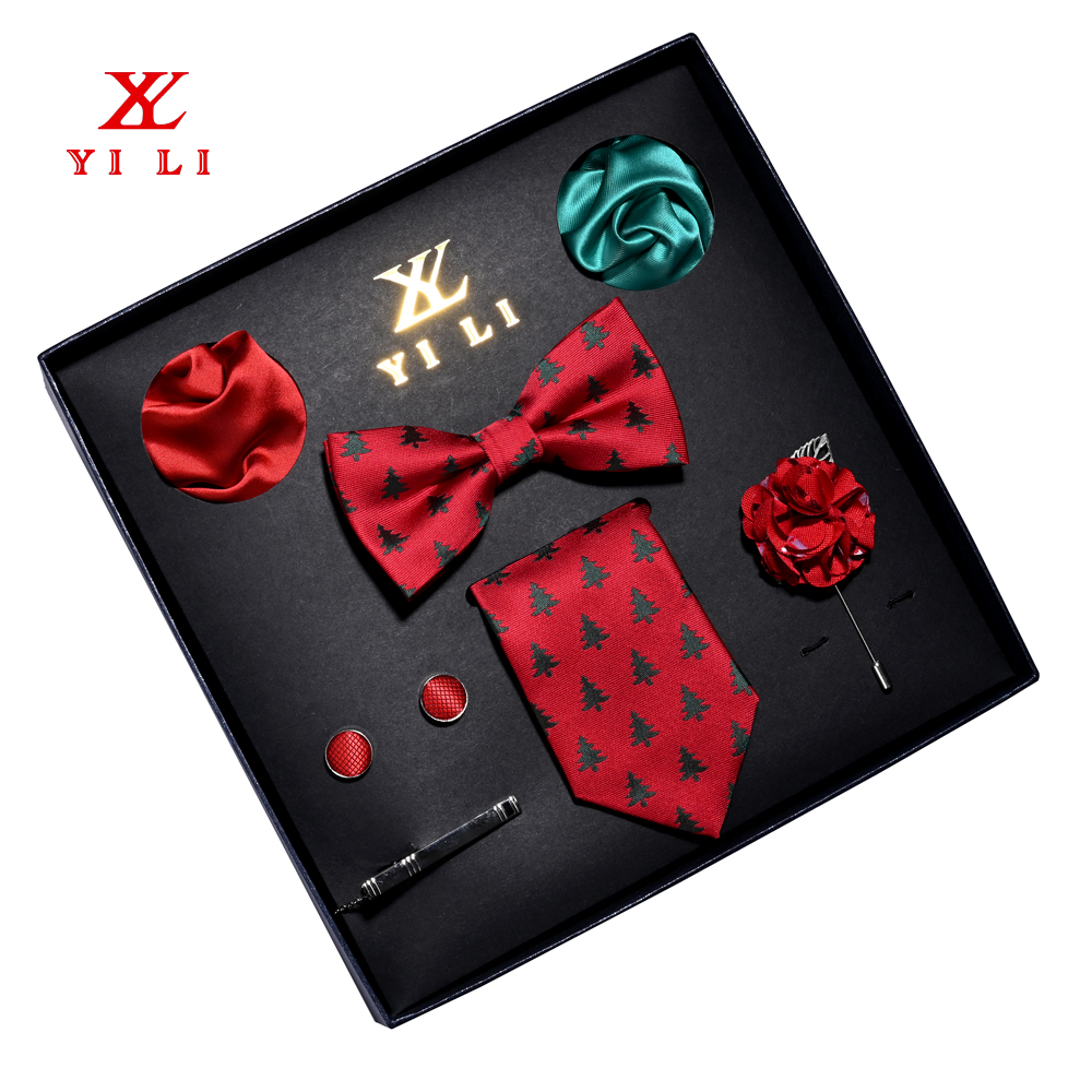 圣誕領帶領結禮盒紅色圣誕款手帕袖扣禮...