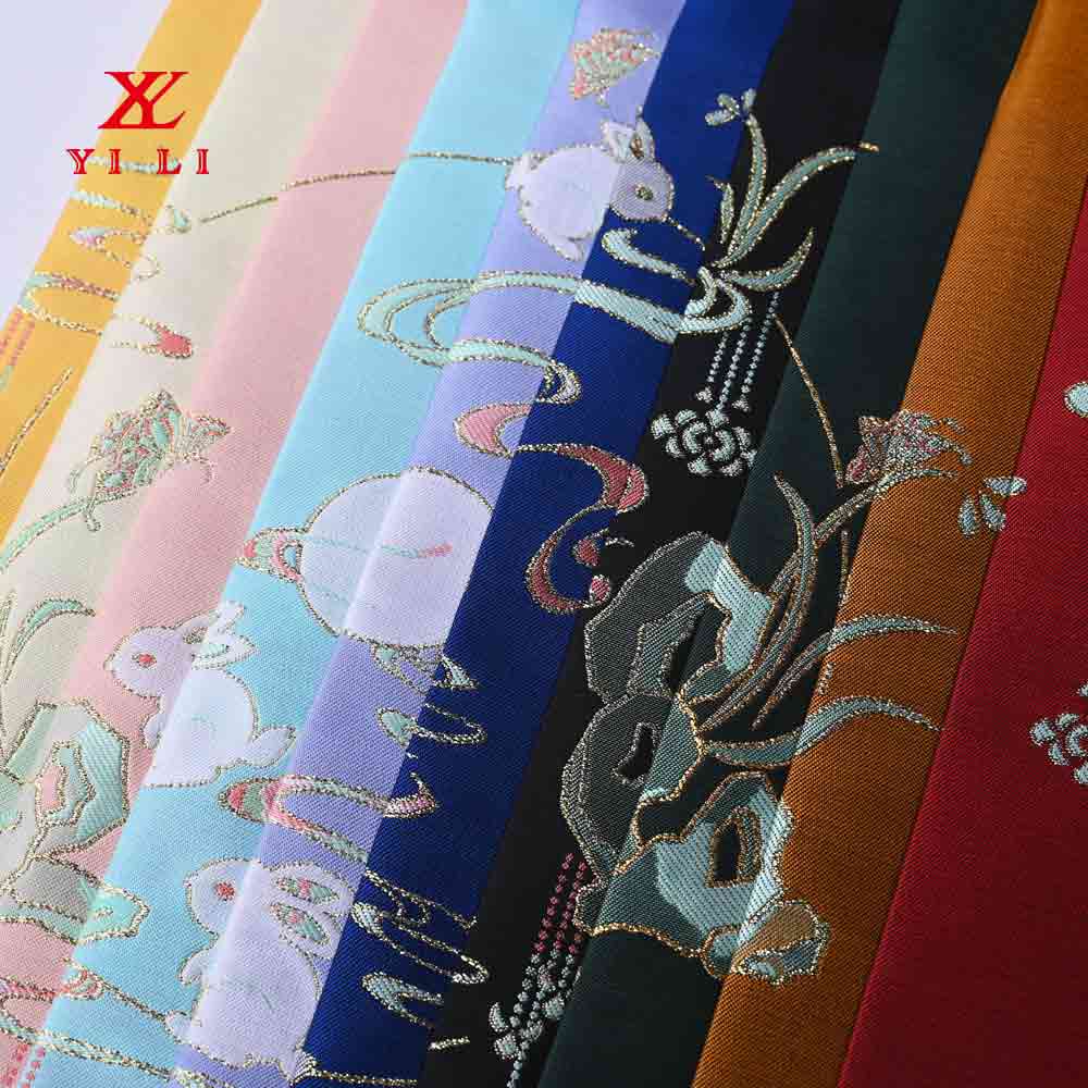 漢服布料金色滌絲色織面料漢服面料定制...